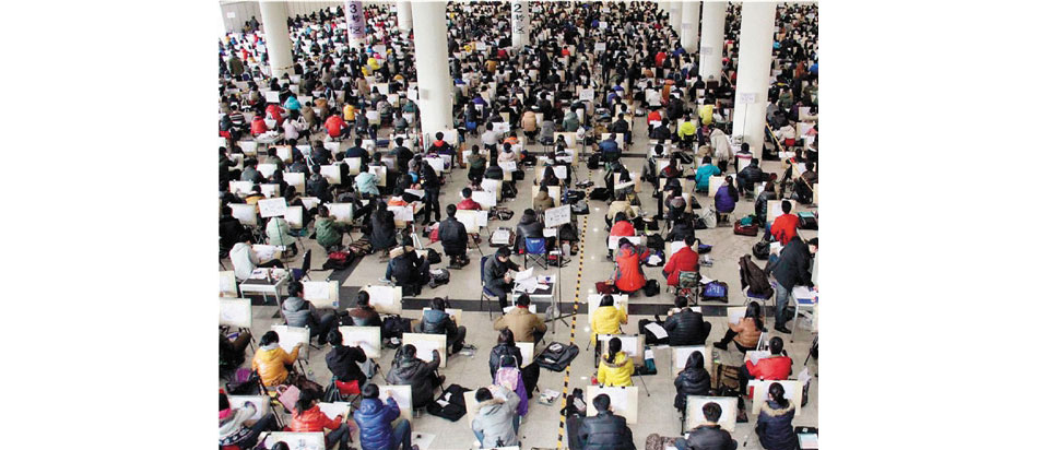 대학이나 특정 전공에 따라 중국식 수능을 치른 다음, 학교별로 입학고사 시험을 추가로 봐야 한다. 사진은 미대 실기시험에 응시한 수험생들의 모습.