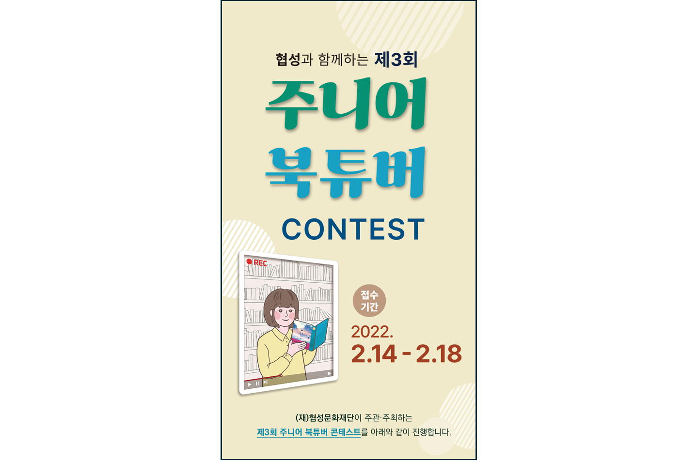 협성문화재단이 제3회 주니어 북튜버 콘테스트를 개최한다. 참가를 원하면 지정 도서 중 한 권을 선택해 읽은 후 책 리뷰를 글이 아닌 5~10분 이내의 영상으로 제작해 온라인에 업로드하면 된다.