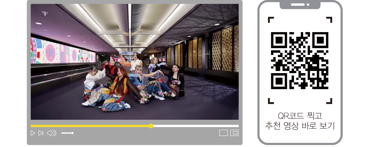 인천공항 입국장 전통문화 미디어 존에서 댄스 크루 홀리뱅이 한국 전통미가 돋보이는 퍼포먼스를 선보인다. 홀리뱅은 청바지와 저고리를 활용해 한복을 현대적으로 재해석한 의상을 입고, 전통문화 미디어 존의 다양한 장소를 배경으로 고전적인 몸짓과 힙합이 자연스럽게 어우러진 퍼포먼스를 펼친다. 국악과 힙합, 전통과 첨단기술의 조화가 눈길을 사로잡는다.