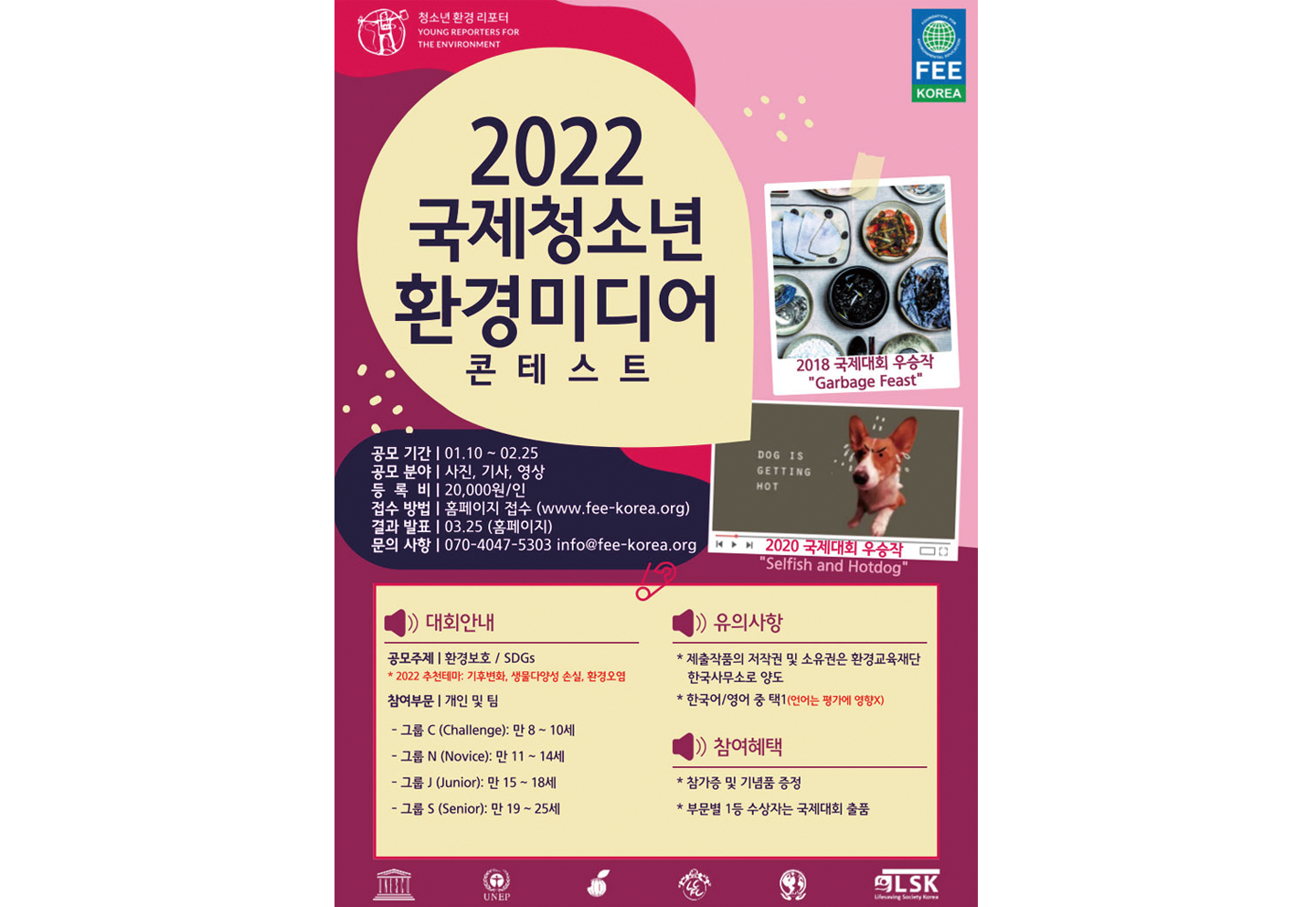 올해 주제는 기후변화, 생물 다양성 손실, 환경오염 등이다. 환경을 보호하고 지속 가능한 지구의 환경을 유지하는 아이디어를 담은 사진, 기사(보고서·에세이·수필·논문 등 형식 무관), 영상을 제출하면 된다. 참가비는 2만 원이다.