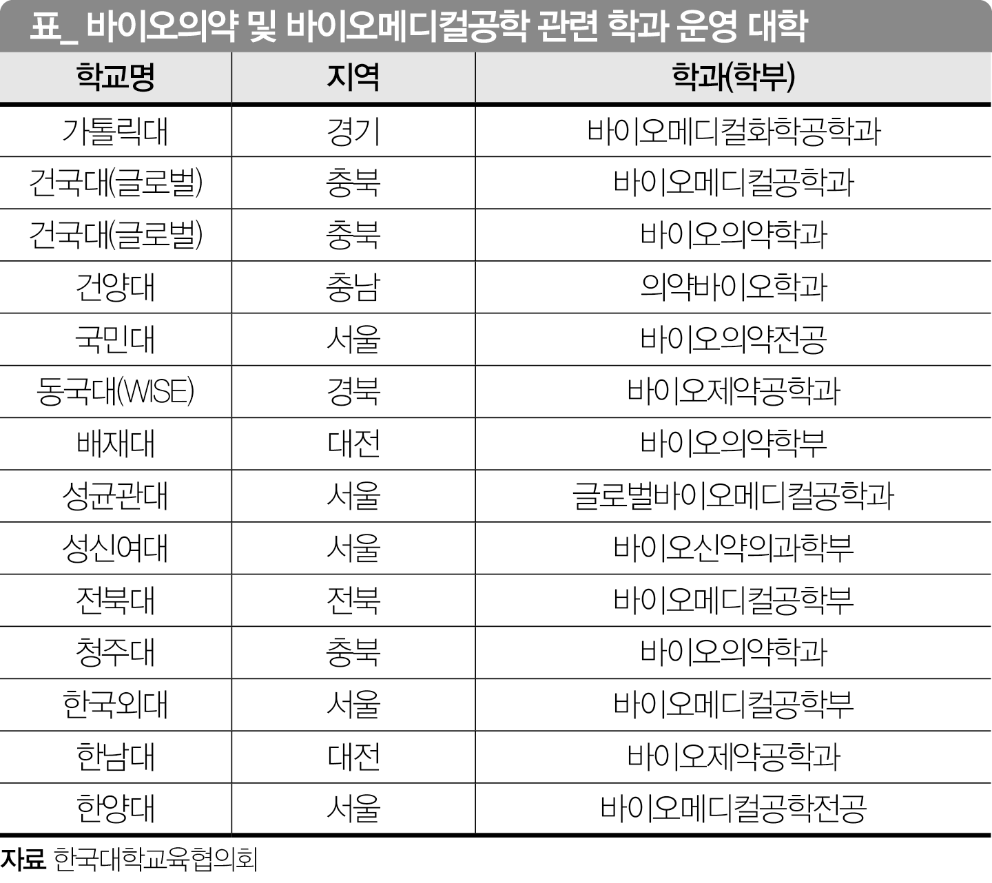 기술 개발 속도도 과거 10년 단위에서 2년 단위로, 현재는 1년 단위까지 빨라졌다는 게 대학가의 설명. 국내 바이오의약품 시장도 주력 수출 산업인 자동차와 반도체, 조선업보다 더 커질 것이란 전망도 나온다. 생명과학과 인공지능, 의공학의 융합 학문인 바이오공학도 마찬가지. 다양한 바이오 관련 학과 중 바이오의약과와 바이오메디컬공학과의 교육과정과 졸업 후 진로를 살펴봤다.