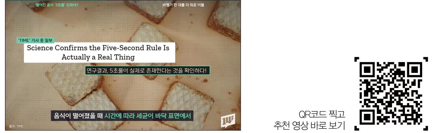 한 방송에서 길거리에 떨어진 음식을 툭툭 털어서 먹는 예능인의 모습에 많은 사람이 놀라워했다. 당시 그는 ‘땅에 떨어져도 3초 안에만 주워 먹으면 문제 없다’고 주장했다. 실제 해외에서도 떨어진 음식을 5초 안에만 집어 먹으면 괜찮다는 ‘5초 룰’이 존재한다고. 그런데 최근 영국의 한 연구팀에 의해 이런 속설이 실제 과학적 근거가 있다는 사실이 밝혀졌다는데. 진짜인지 궁금하다면 영상을 클릭해보자.