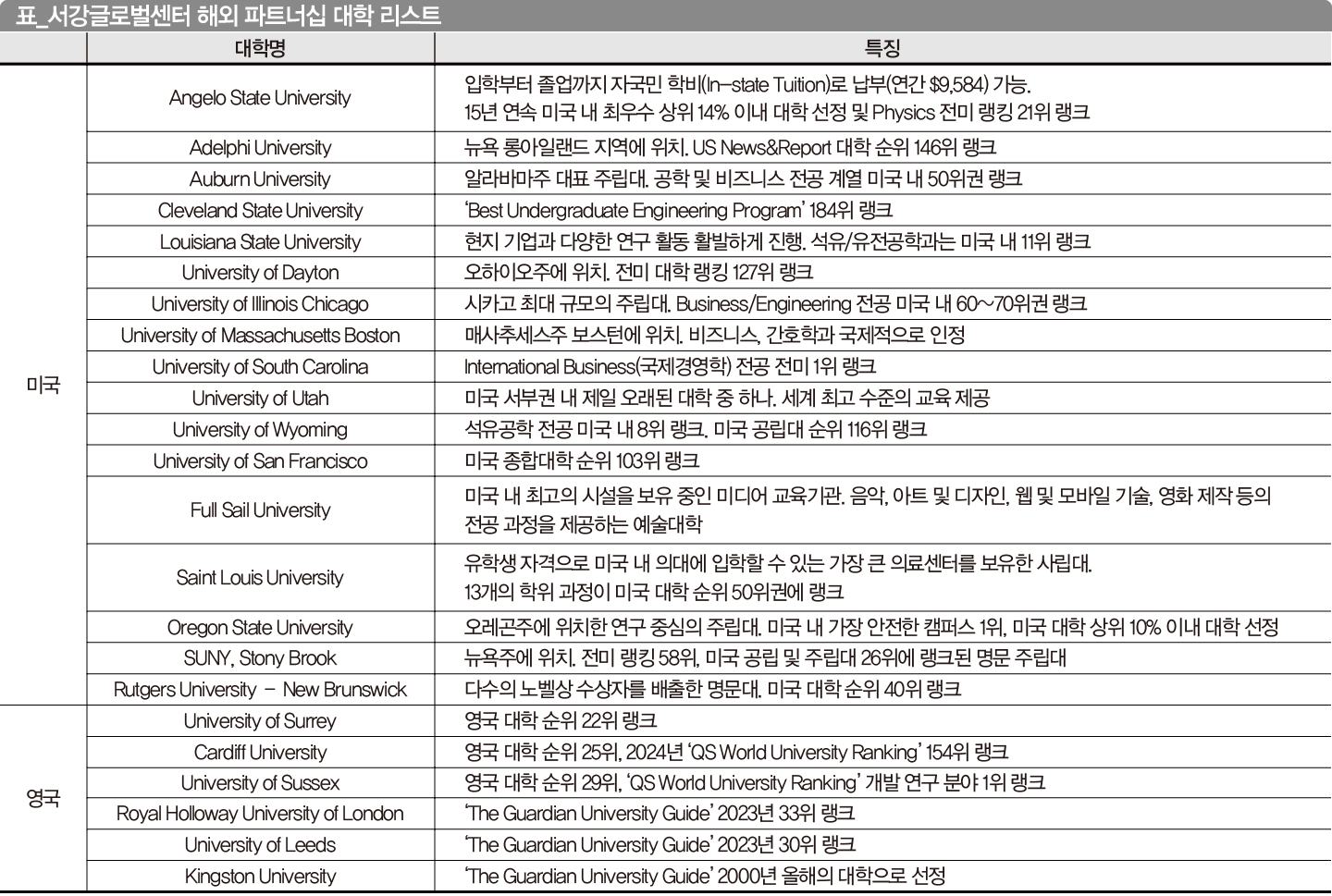 우리나라 명문대와 연계된 글로벌 패스웨이 프로그램을 통해 한국에서 1년간 해외 대학에서 인정하는 필수 교양 수업 8과목과 영어 수업을 들은 후 유학을 떠날 수 있는 색다른 길이 있다. 미국을 비롯한 해외 유수 대학들과 협력을 맺고 유학을 희망하는 학생들을 지원하는 ‘서강글로벌패스웨이’가 그것이다.