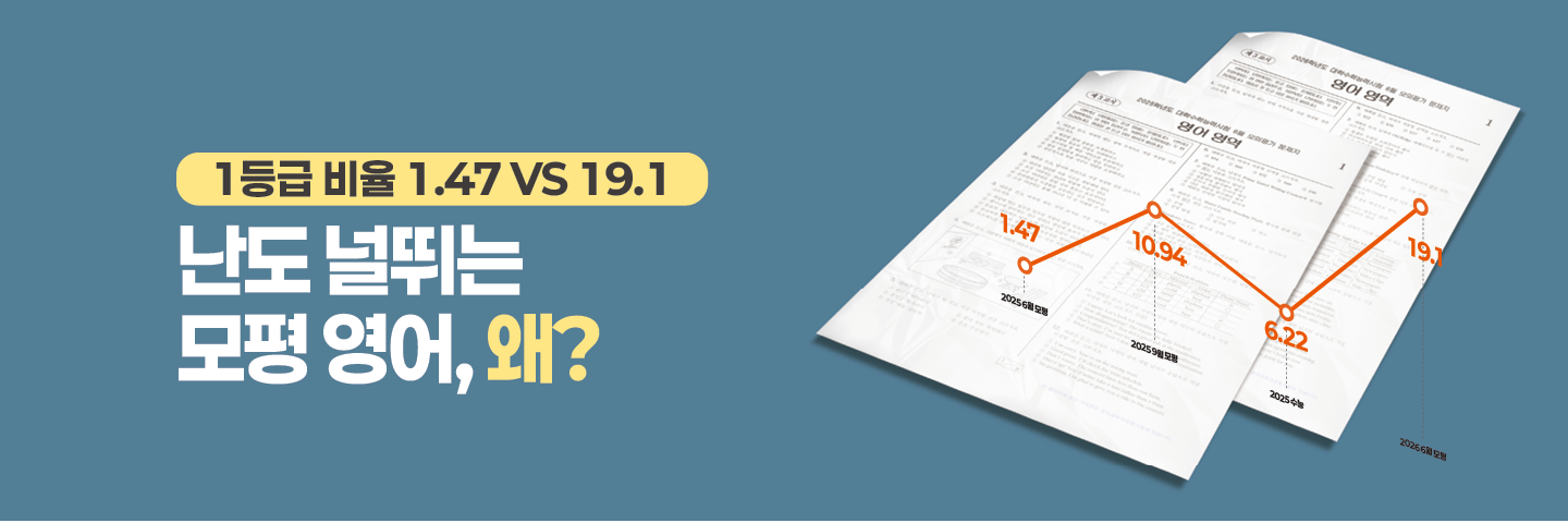 수능 영어 영역은 수험생에게 수능 최저 학력 기준을 맞추는 ‘전략 과목’이죠. 문제는 수능 모의평가와 실제 수능 사이의 난도 차이가 크다는 점입니다. 고등학교 3년 동안 치르는 14회의 모의고사 중, 수능 출제 기관이 주관하고 졸업생도 합류하는 고3 6월과 9월 모의평가는 ‘수능 실전 대비를 위한 예측과 진단’이라는 의미에서 중요한 시험으로 평가받습니다. 한데 2025학년 수능 6월 모의평가에서는 영어 1등급 비율이 1.47%에 불과했지만, 2026학년 수능 6월 모의평가에서는 무려 19.1%로 급등했습니다. 9월 3일 시행된 수능 9월 모의평가는 가채점 결과, 6월 모의평가에 비해 1등급 비율이 훌쩍 낮아진 3~4%일 것으로 예측되고 있고요. 널뛰는 영어 난도 속에서, 흔들리지 않는 영어 공부법을 짚어봤습니다.