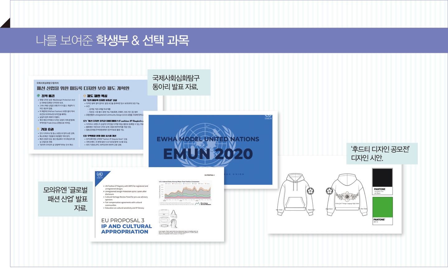 “우리에게 익숙한 대표적인 SPA 브랜드들은 한 달 안에 디자인부터 제작·판매·회수까지 해요. 빨라도 너무 빠르죠. 디자인 보호 조항의 한계와 무역 의장권(디자인권) 분쟁 사례를 탐구하며, 미등록 디자인 보호 정책을 제안했어요. 패션의 가치를 지키려면 법적 이해와 전략이 함께 가야 한다는 점을 깊이 깨달았어요.”