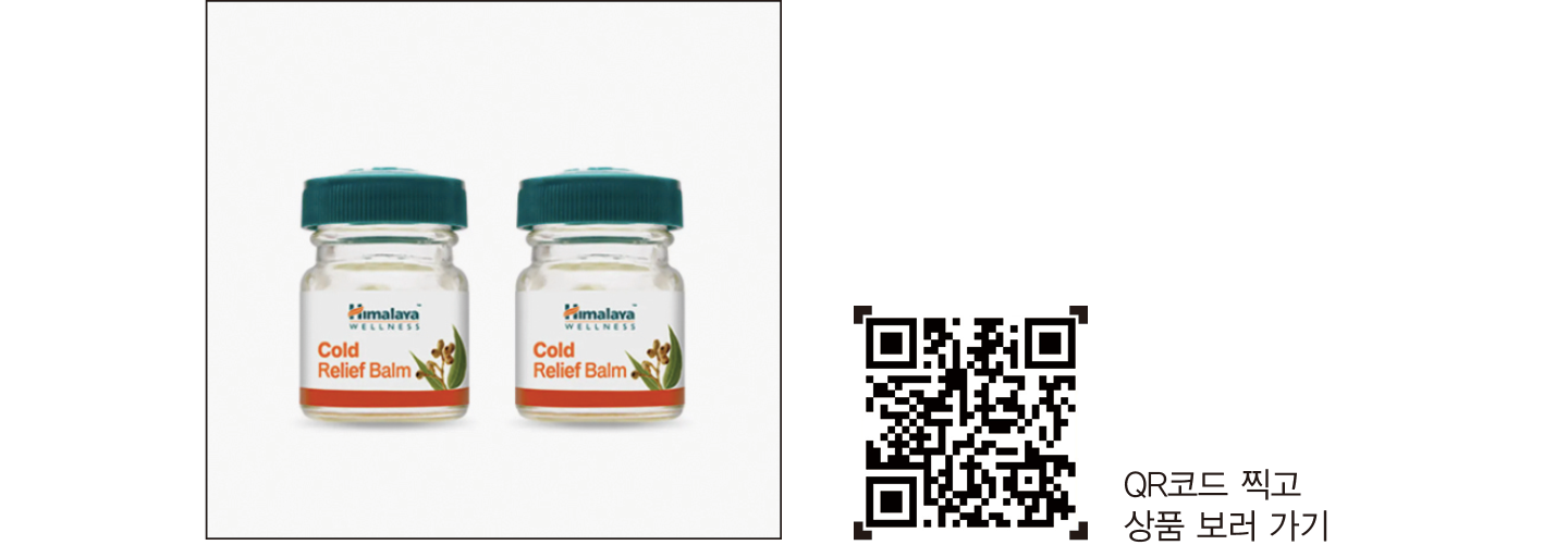 천연 아로마 오일로 만들어진 히말라야 콜드 릴리프 밤은 활용도가 높은 제품이에요. 집중력과 기억력 향상에 도움을 주는 유칼립투스 오일과 몸과 마음을 진정시키는 레몬그라스 오일, 피로 완화에 효과적인 페퍼민트 오일이 함유돼 있습니다. 관자놀이에 발라주면 상쾌한 아로마테라피 효과를 얻을 수 있고, 코가 막혀 불편할 때 코 주변에 발라주면 시원함을 느낄 수 있어요. 물과 1:9 비율로 섞으면 아로마 디퓨저로 사용할 수 있습니다.