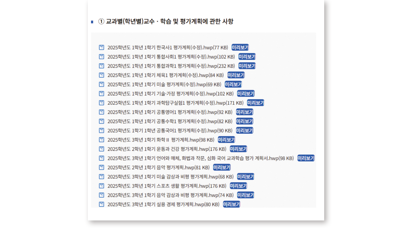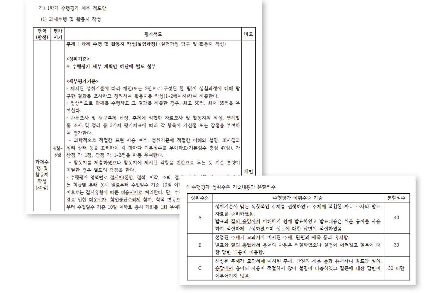 /STEP 1/ 학업성취사항 › 교과별(학년별) 교수·학습 및 평가계획에 관한 사항