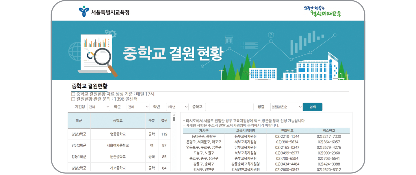 이사를 할 예정이라 중학생 아이도 전학을 앞두고 있어요. 전학을 신청해야 하던데, 결원 현황은 어디서 확인할 수 있나요?