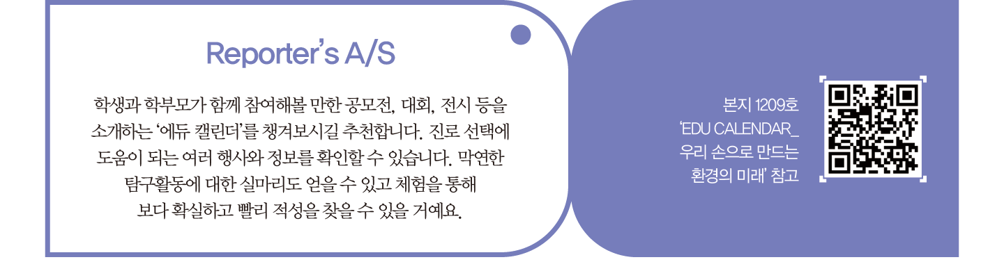 아이들이 자신의 길을 찾아갈 수 있도록 앞으로도 다양한 학과나 진로 정보를 많이 다뤄주면 좋겠습니다. 독자가 <내일교육>에서 소개된 도서를 직접 읽고 활용했던 경험이나 전시·강연회 후기도 들어보면 보다 도움이 될 것 같아요.