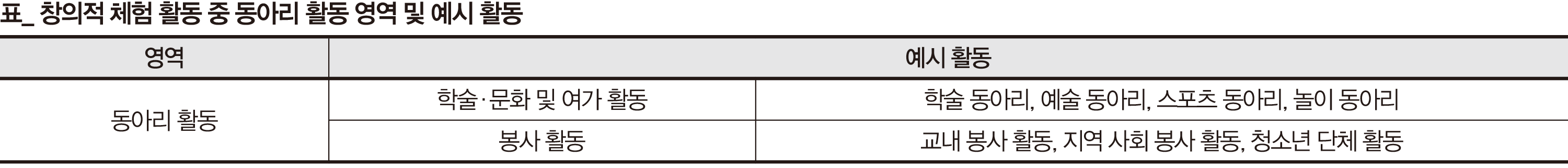 고등학교에 입학하면 동아리에 대한 관심이 높아집니다. 정규 교육과정으로 졸업에 필요한 192학점 중 18학점이 창의적 체험 활동(창체)에 배당되는데, 자율·자치 활동, 동아리 활동, 진로 활동으로 매 학기 3학점씩 이수해야 하기 때문입니다. 대부분의 고등학교는 모든 학생이 동아리에 가입해, 창체 시간에 자신의 진로와 흥미에 맞는 의미 있는 활동을 이어가도록 하고 있습니다.