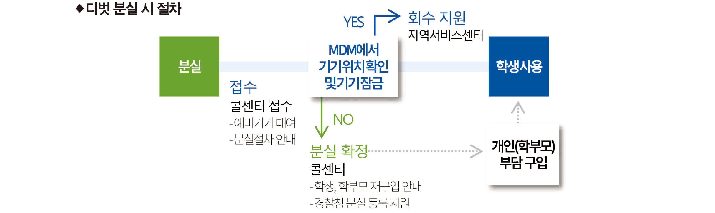 기기를 분실하면 재구매 절차를 밟아야 합니다. 이때 기기 구매비의 90% 이하를 사용자가 부담하며, 펜슬은 구매가의 90%를 내야 해요. 예를 들어 펜슬 구매 가격이 10만 원이면, 9만 원을 부담해야 합니다. 서울시교육청은 디벗의 개별적 사용에 대한 사용자 책무와 중고 거래 방지 등의 이유로 사용자 부담금을 90%로 책정했어요. 취약 계층은 재구매 비용의 50%를 1회 지원받을 수 있습니다. 파손이나 분실 시 디벗 통합콜센터(1566-6647)로 전화하면 됩니다.