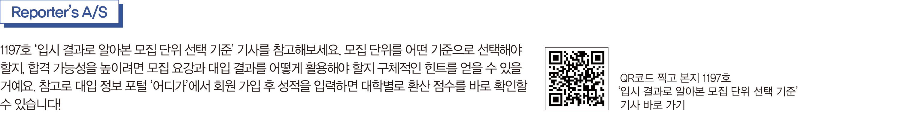 아이가 수시와 정시를 두루 고려했기에 모든 기사를 꼼꼼히 읽었어요. 대입 정보뿐 아니라 선배의 이야기를 담은 기사도 열심히 읽었죠. 최근에는 아이의 내신과 모의고사 성적이 벌어지면서 정시에 집중하기로 결정했어요. 학과 소개 기사 등으로 전체적인 대입의 흐름을 파악하는 데 큰 도움을 받고 있습니다.