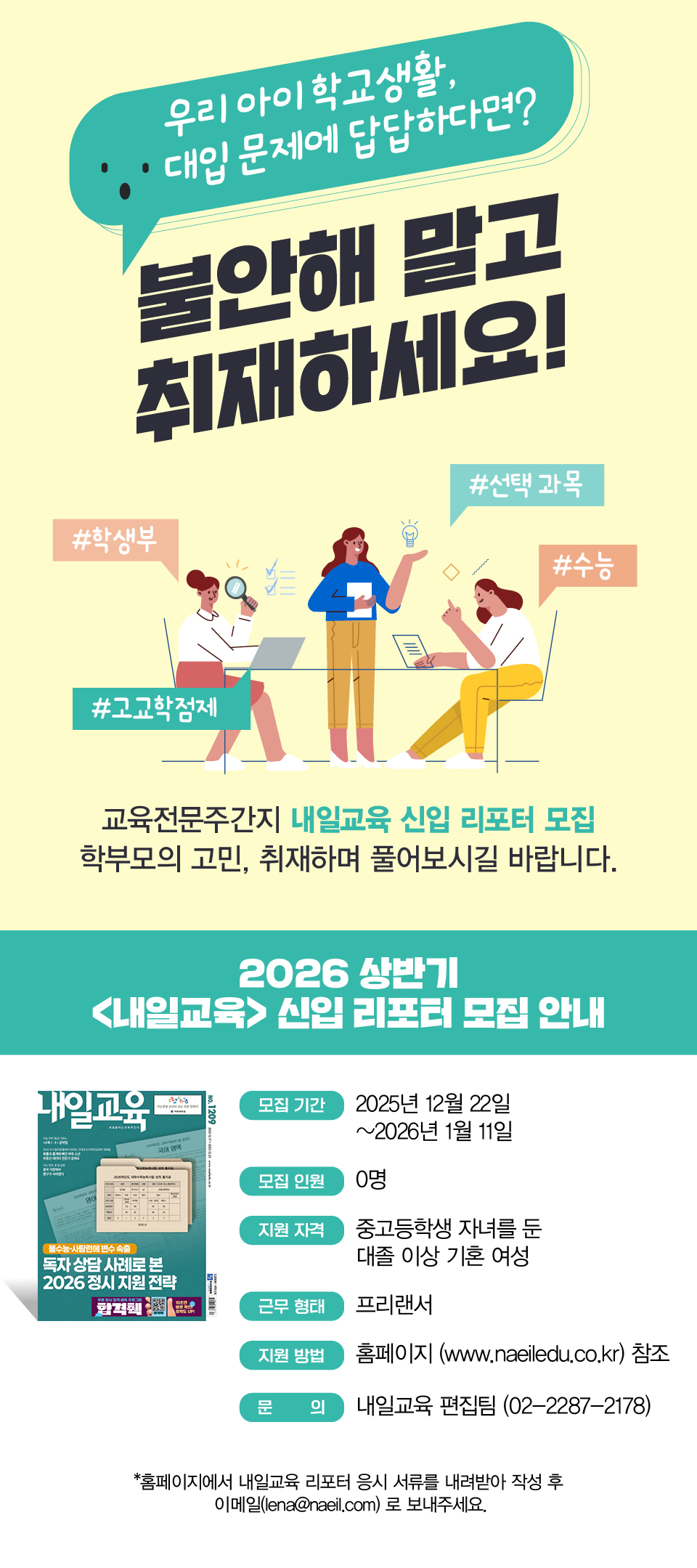 2026 상반기 <내일교육> 신입 리포터 모집