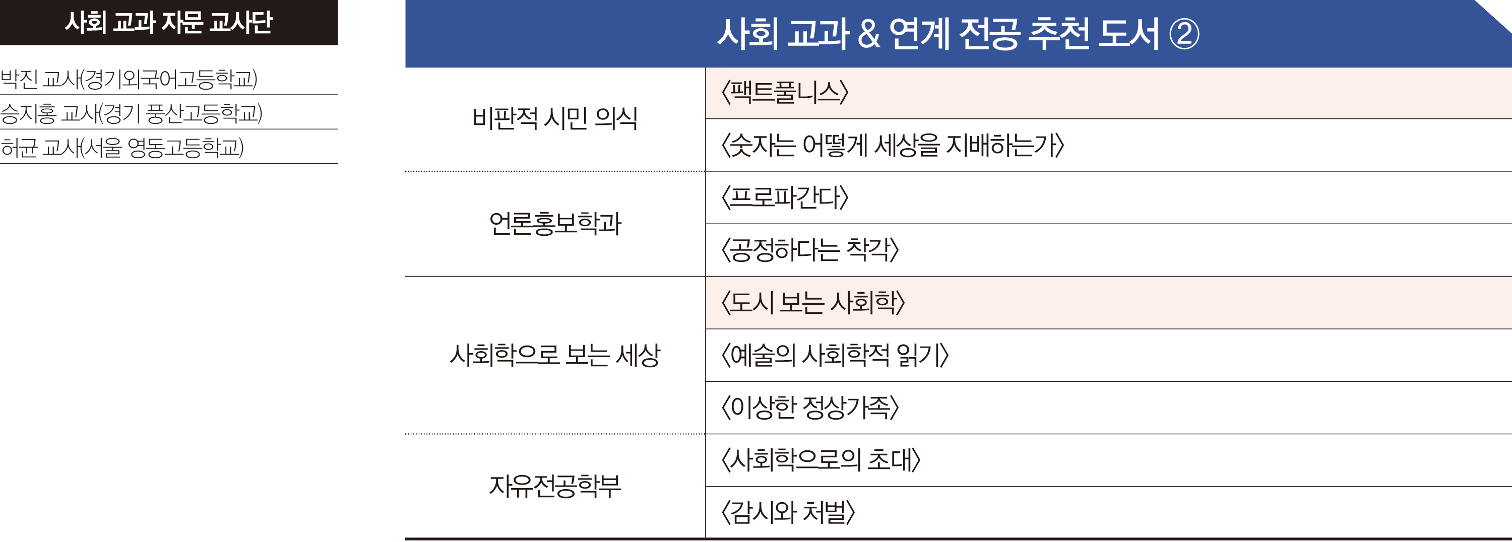 다섯 번에 걸쳐 정리한 2025년 ‘쌤과 함께! 교과 연계 적합書’ 완결판 시리즈가 모두 끝났습니다. 2026년 교과 연계 적합書 시리즈 연재를 시작하기 전, 여러 교과에서 공통으로 추천한 도서를 한 페이지에 모아 소개합니다. 책 한 권을 둘러싼 다양한 시각을 확인해보세요._ 편집자