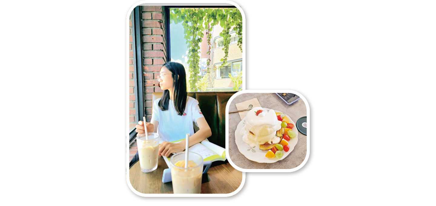 시험이 코앞에 닥쳤는데 도저히 집중이 안 될 때는 ‘카페 멍’이 좋다네요. 맛있는 디저트를 먹으러 집을 나서면서도 불안한지 책을 바리바리 싸더라고요. 마음의 위안을 위해 일단 책은 펴놓고! 달달한 걸 먹으며 머릿속을 비우는 아이. 오늘은 잔소리도 살짝 접어둡니다.