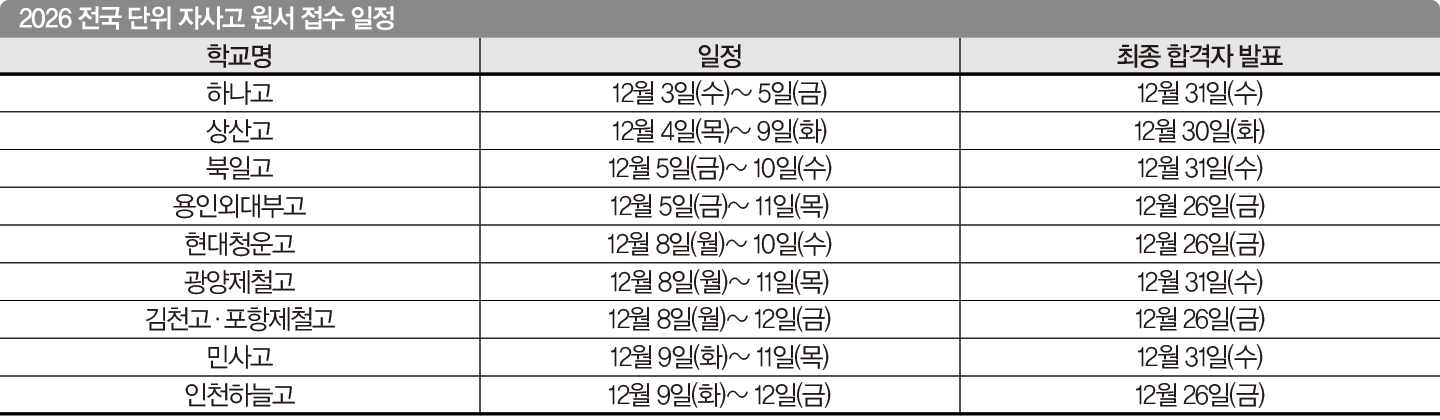2026 후기고 원서 접수가 12월 3일(수) 서울 지역을 시작으로 차례로 진행된다. 고교 입학 전형은 선발 방식에 따라 학교장 선발고와 교육감 선발고로 구분되며, 특목·자사고는 학교장 선발고, 일반고는 교육감 선발고에 해당한다. 후기고 역시 이중 지원이 금지되기 때문에 외고·국제고·자사고 중 한 곳에만 원서를 쓸 수 있다. 단, 일반고와 동시 지원은 가능하다. 즉, 1단계에서 특목·자사고 중 한 곳에 원서를 제출한 학생은 2단계에서 지역 내 일반고를 선택해 지원할 수 있다.