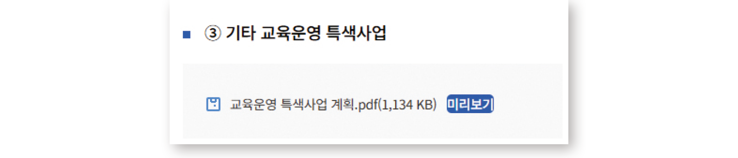 학교가 업로드한 기타 교육운영 특색사업 파일을 클릭한다.