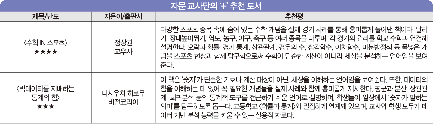 “야구는 숫자의 언어로 이루어진 스포츠입니다. 경기마다 쏟아지는 수많은 기록과 데이터 속에는 확률, 비율, 평균, 함수, 통계와 같은 수학의 원리가 숨어 있습니다. 이 책은 야구라는 친숙한 스포츠를 통해 수학 개념을 흥미롭게 탐구하도록 안내합니다. 타율, 출루율, WAR, 피타고리안 기대승률 등 실제 경기 지표를 분석하면서 수학이 단순한 계산이 아니라 세상을 이해하는 도구임을 깨닫게 합니다. 야구를 좋아하는 학생이라면 수학의 재미를, 수학을 좋아하는 학생이라면 야구의 전략과 통계를 발견하는 즐거움을 느낄 수 있습니다. 경기장의 전광판부터 선수의 데이터까지, 숫자로 이야기를 읽는 새로운 눈을 열어주는 책입니다.” _ 자문 교사단