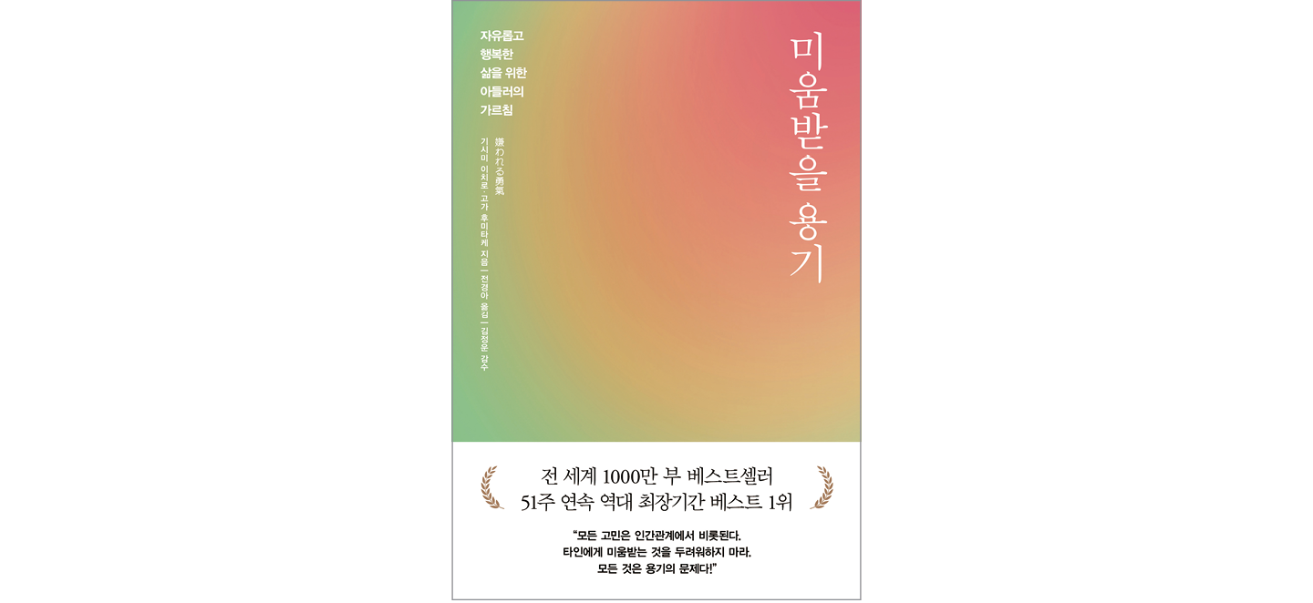 아들러의 심리학을 연구하는 철학자와 이에 반박하는 청년의 대화로 이루어진 책입니다. 모든 고민은 인간관계에서 비롯되며 타인의 과제로부터 분리돼야 한다고 말하죠. 가치와 기준을 타인에게 맞추면 자유롭지 못하고 행복할 수도 없다는 지적이 인상 깊었어요.
